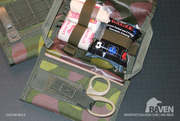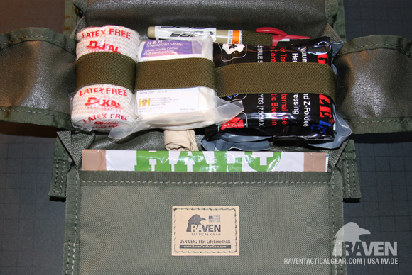 The USN Gen2 was the result of a special project with USN NSW. It's designed around specific medical supplies (a best of breed approach) that were identified as part of the project with the design goal of creating the smallest possible package. So it will ONLY hold (mainly because of product sizes/cubes) the following items: Quick Clot Combat Gauze LE, Z-Folded; Nasopharyngeal Airway 28fr w/lube; HALO Chest Seals,(1pr) ; Israeli Bandage 4"; H&H Compressed Gauze; Elastic Bandage 3"; Decompression Needle; & Nitrile Gloves Large (1pr).